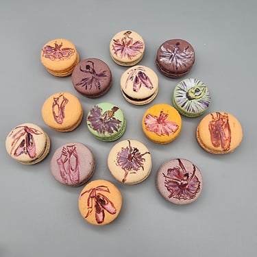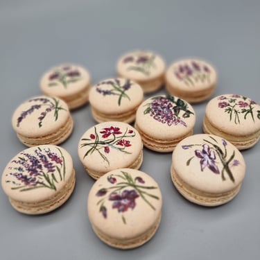 Macarons pagaminti su natūraliomis vaisių tyrėmis. Individualiems užsakymams macarons gali būti tapomi (€1.7/vnt)
