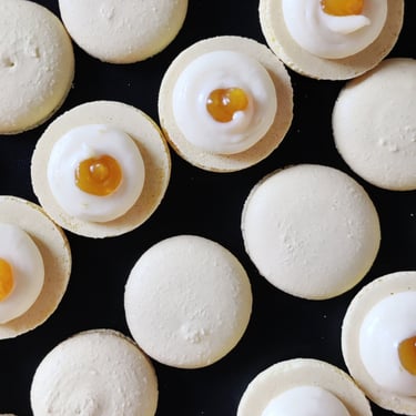 Mango – pasiflorų macarons (1 vnt)
