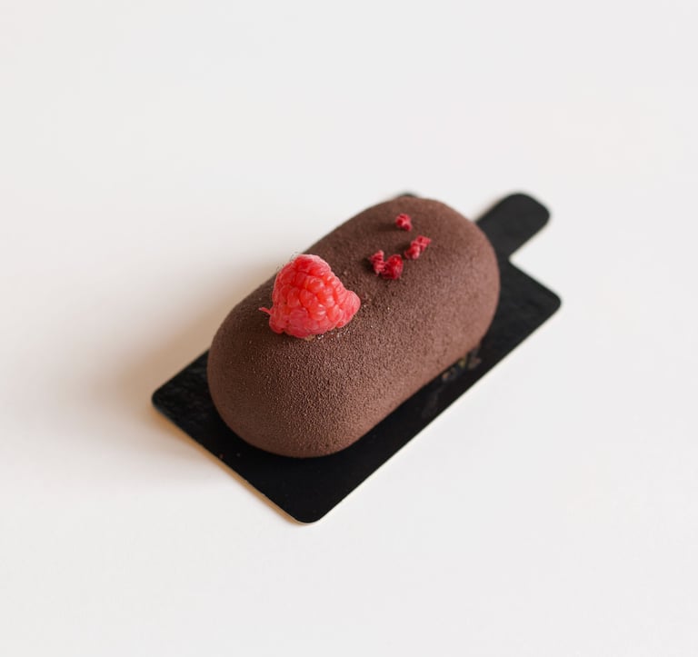 Šokoladinis su avietėmis desertas